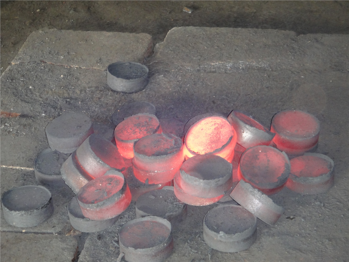 鋼渣金屬屑熱壓餅生產(chǎn)線熱壓成型系統(tǒng)通過傾斜布置加熱滾筒,使物料從上端進(jìn)入,載熱體從下端進(jìn)入,與物料形成逆流接觸。隨著加熱圓筒的轉(zhuǎn)動,鋼渣金屬屑熱壓餅生產(chǎn)線在重力的作用下運(yùn)行到下端,獲得熱壓成型所需的熱量。在加熱滾筒的末端有一個(gè)加熱裝置,由天然氣供應(yīng)熱量。加熱筒分為高溫區(qū)、中溫區(qū)和低溫區(qū)。進(jìn)料端為低溫區(qū),由廢氣直接循環(huán)預(yù)熱。預(yù)熱后的鋼渣顆粒進(jìn)入中溫區(qū)進(jìn)行300℃預(yù)熱,然后進(jìn)入高溫區(qū)進(jìn)行700℃輻射。烘干后的700℃鋼渣金屬屑熱壓餅生產(chǎn)線通過熱壓輸送系統(tǒng)輸送至800噸壓力機(jī)系統(tǒng)進(jìn)行熱壓。
